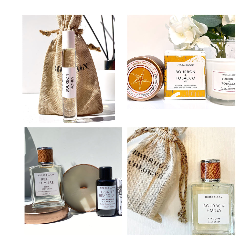 Hydra Blooms boozy & sweet Bourbon + Tobacco Cotton Wick Candle made with Soy. Hand poured in our Californian LAB.
